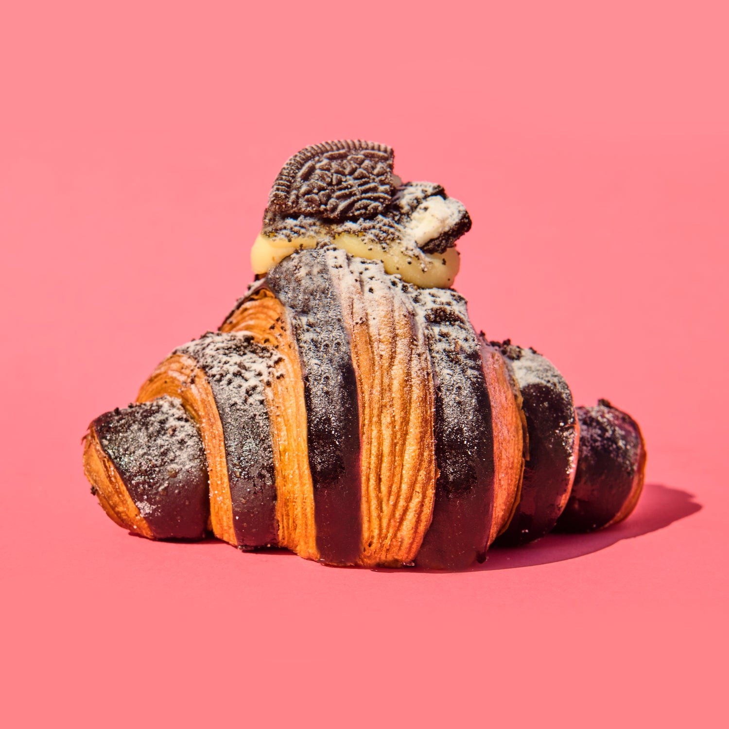 Meet our Cookies & Cream Bicolor Croissant—a striking black-and-white croissant filled with velvety Oreo white chocolate ganache, topped with creamy mascarpone, crushed Oreos, and a dusting of snow sugar ❄️.